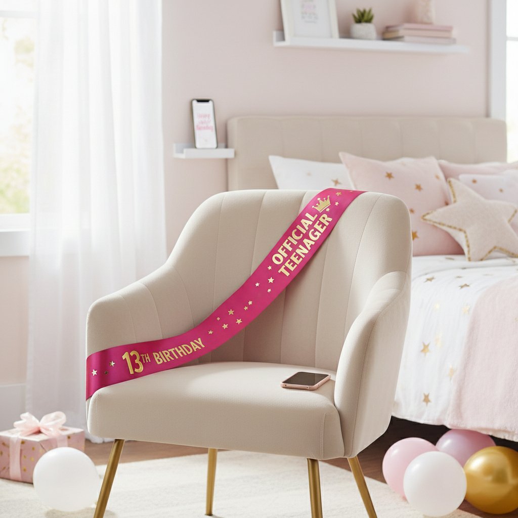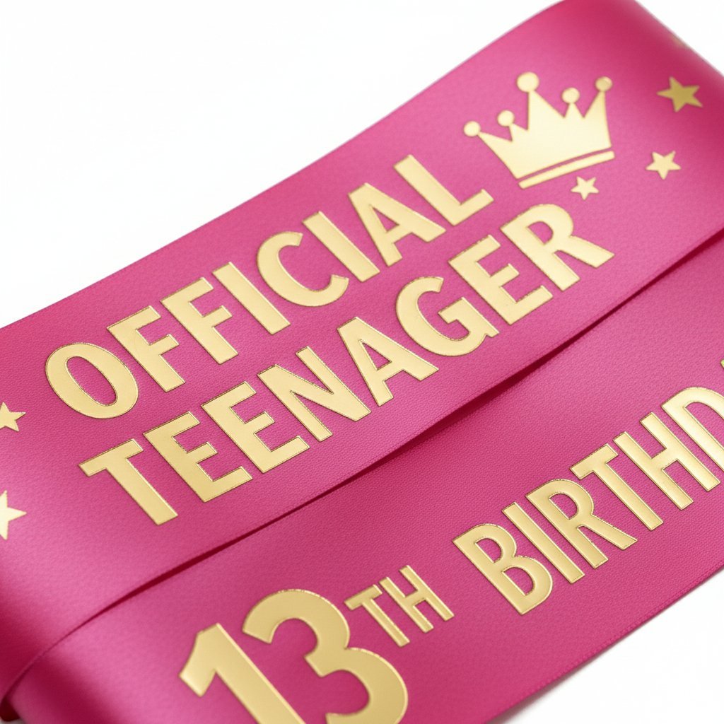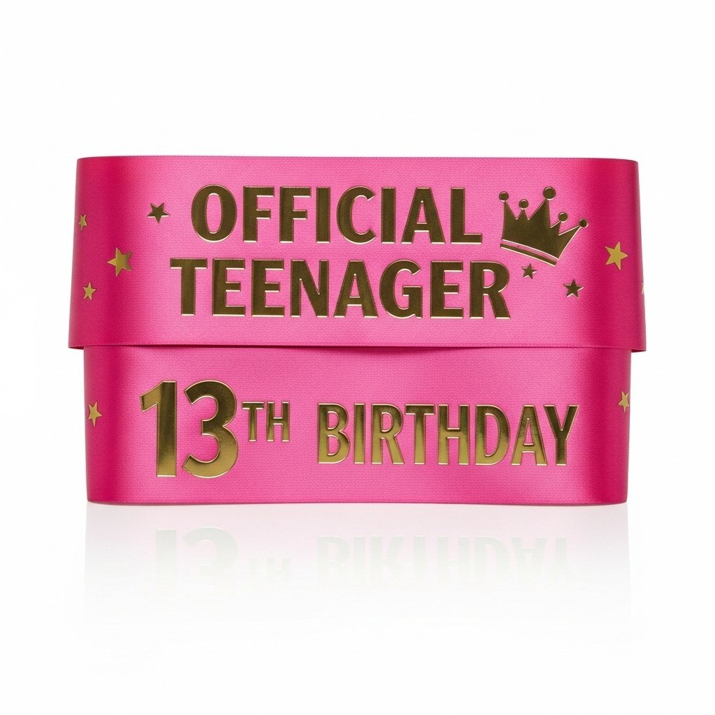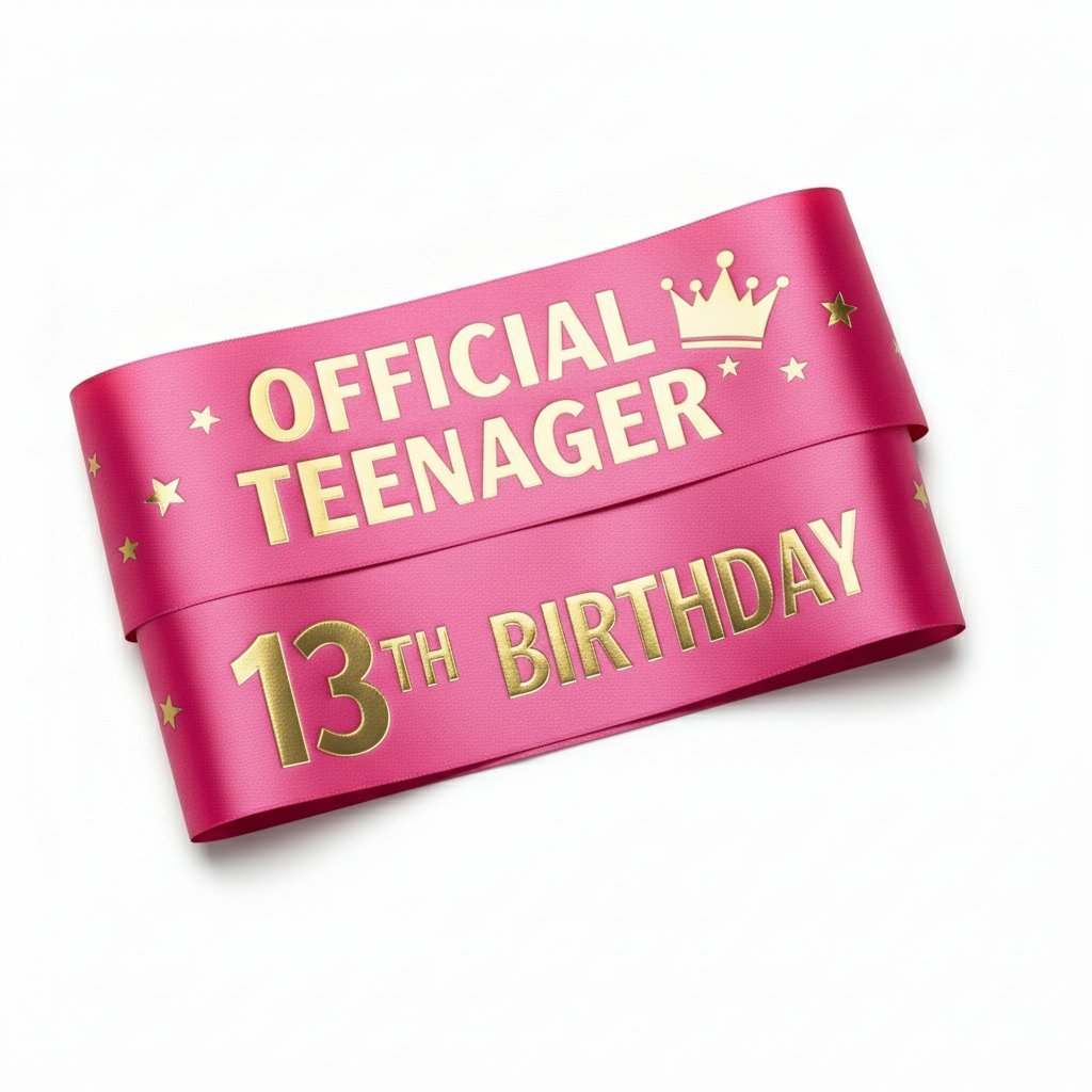 SKU: SB565 Category: Birthday Accessories Tags: 13th birthday sash, birthday girl sash, official teenager sash, pink and gold party supplies, satin birthday sash, teen birthday decorations, thirteenth birthday gift Brand: Cravelynx
