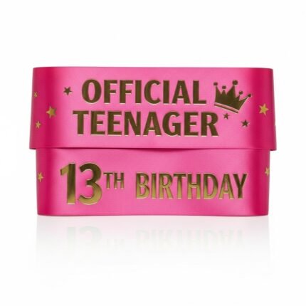 Myvoraa Official Teenager 13th Birthday Sash for Girls | Pink & Gold Satin Sash